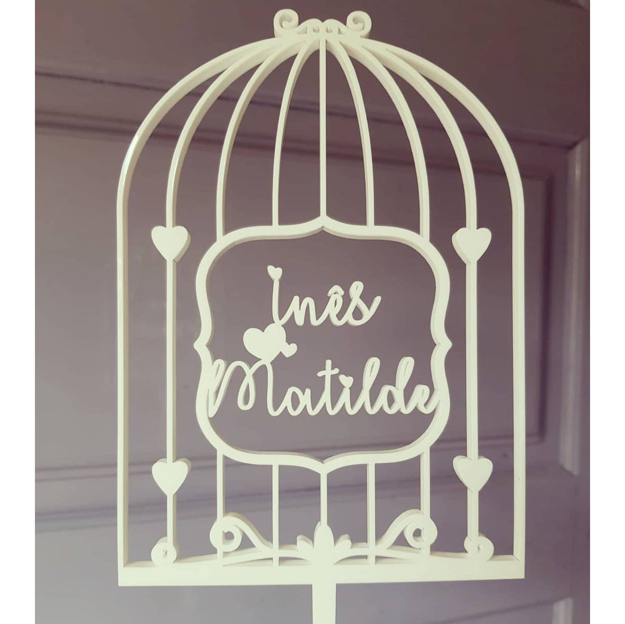 Topo de Bolo Moldura Gaiola em MDF Branco com Corte Laser.